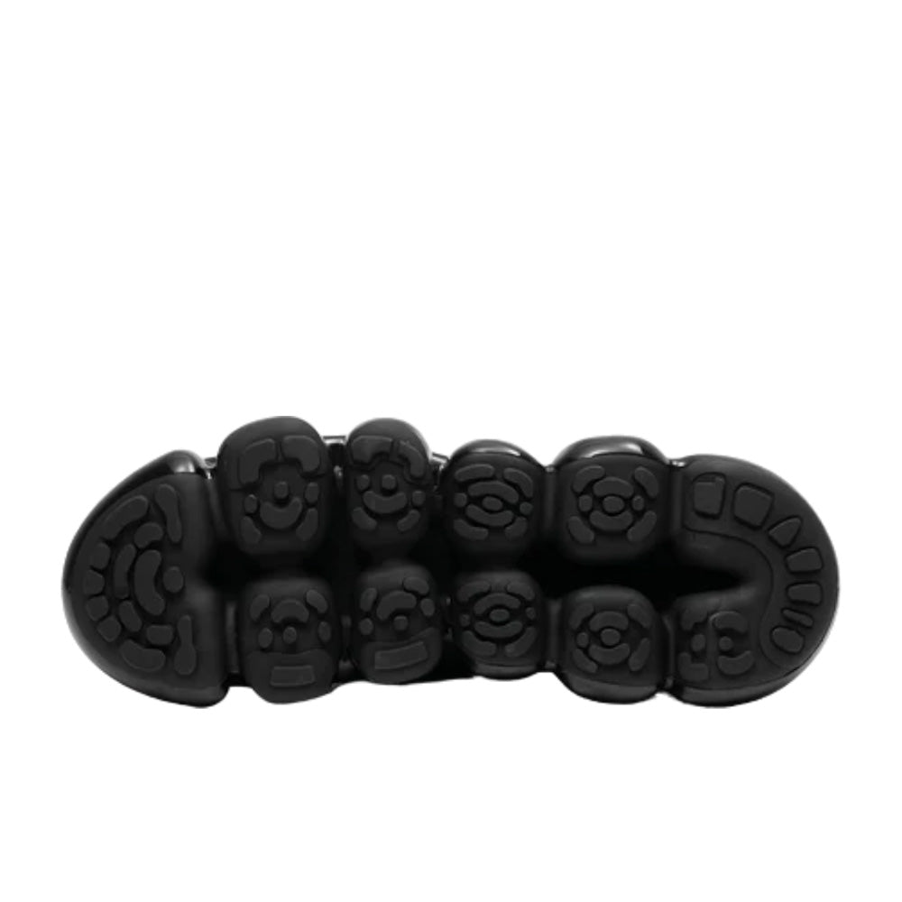 • Thick-soled clear soles made of transparent spheres reminiscent of jewelry draw the wearer's and viewer's attention to wearer's feet