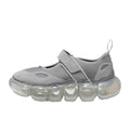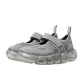 • The upper is a Mary Jane made of a combination of different materials: wetsuit-like fabric and suede.