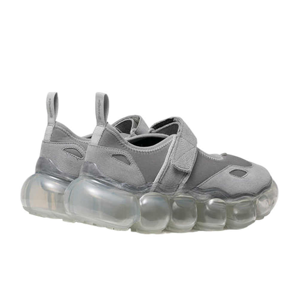 • Thick-soled clear soles made of transparent spheres reminiscent of jewelry draw the wearer's and viewer's attention to wearer's feet.