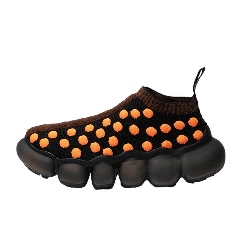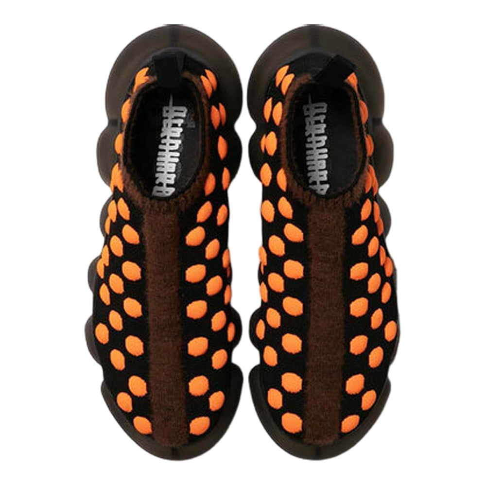 • The upper has several small bumps, with a mohawk-like hairy bump in the center. The ribs are also knitted in a hairy knit.